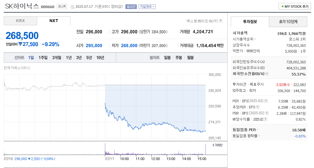 SK하이닉스 주가 시세 요약 (2025년 7월 기준)
